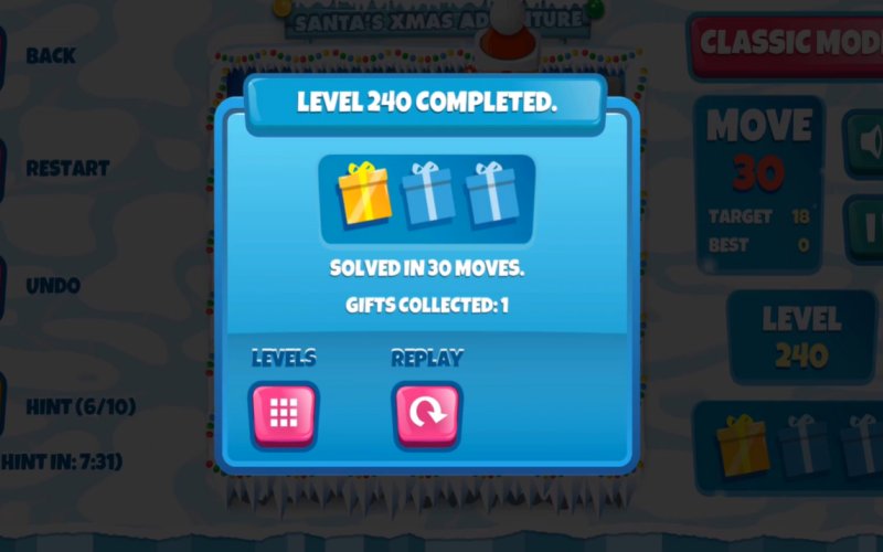 Help Santa find his lost gifts in this fun family puzzle game! Slide tiles to form his path through 720 challenging levels across three modes. Use hints if you get stuck on this deceptively tricky adventure.
