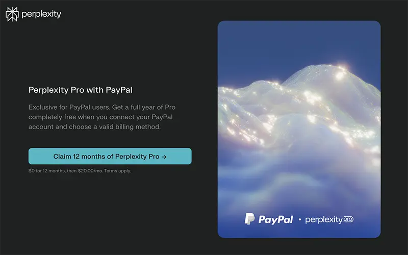 The current promotion offers 12 months of Perplexity Pro free of charge when you subscribe using PayPal. Once activated, you can take full advantage of Pro features for an entire year with no upfront payment.