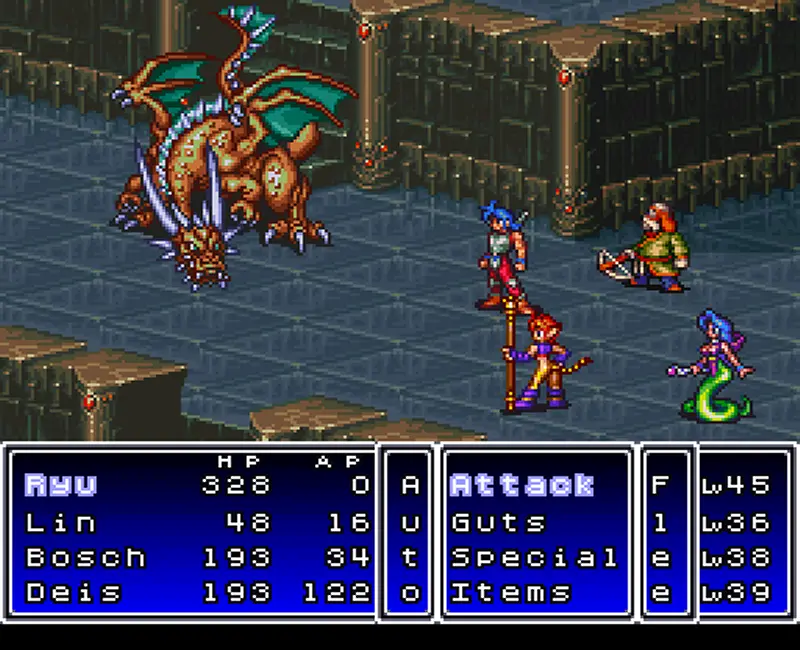 Capcom’s RPG debut, released in Japan in 1993 and localized for North America by SquareSoft (now Square Enix) in 1994, launched the dragon‑shifting Breath of Fire series. You play Ryu, a young hero who can transform into powerful dragons, navigating a mostly linear tale of betrayal and restoration. The story balances lighthearted party banter with darker moments—village razings and betrayals—creating an engaging, emotionally varied adventure.