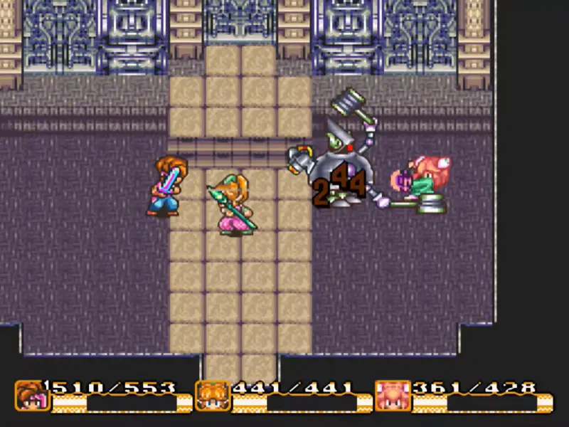 - Using the SNES Multitap, up to three players can control the main hero Randi, his sprite ally Popoi, and the warrior girl Primm simultaneously. This was extremely rare in 1993 and remains a standout feature—few RPGs before or since have offered such smooth, drop-in co-op in a story-driven adventure.