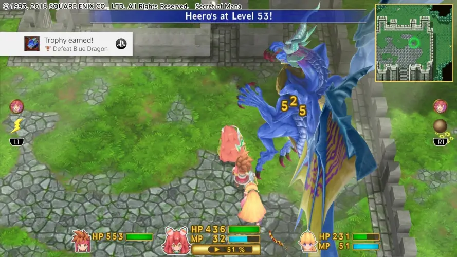 - Experience real-time action RPG combat on the SNES with the Ring Command menu, swapping weapons and casting spells as you battle Mana Beasts and bosses like Spiky Tiger alongside your party.
