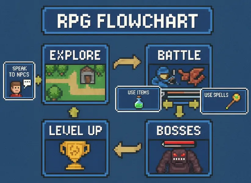 RPGs (Role-Playing Games) let players step into fictional characters, shaping stories through their choices and actions. More than controlling avatars, players embody them—navigating exploration, combat, dialogue with NPCs (Non-Player Characters), and growth. RPGs emphasize narrative depth, character development, and player agency, often blending strategy, storytelling, and simulation. They span formats from tabletop systems and live-action role-play to video games, from classic SNES titles to modern releases and mobile apps. Their influence extends beyond gaming, inspiring books, television, and films.